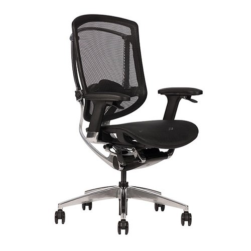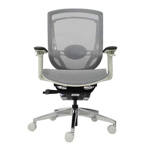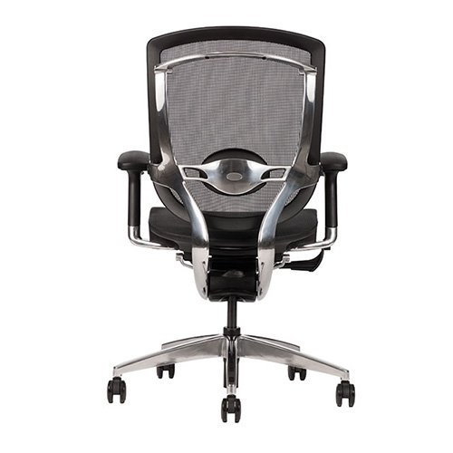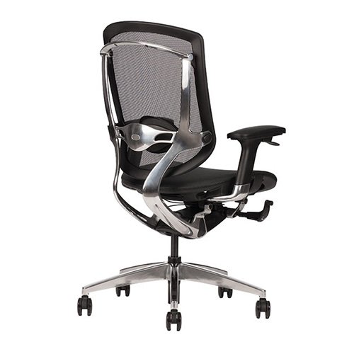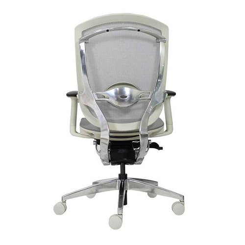 - Respaldo con soporte lumbar ajustable en altura y profunidad, elegante estructura de aluminio pulido.