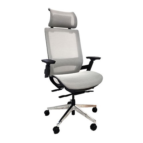 •Cabecera con ajuste de altura, de polipropileno tapizado en malla coreana color gris.